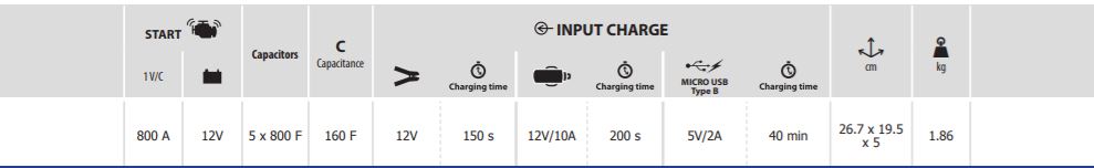 Con su potencia (800A en arranque), puede arrancar todo tipo de vehículos (gasolina y diésel) que utilicen batería de 12V en 2 minutos. 2 modos disponibles de «forzado» para una mayor eficacia: