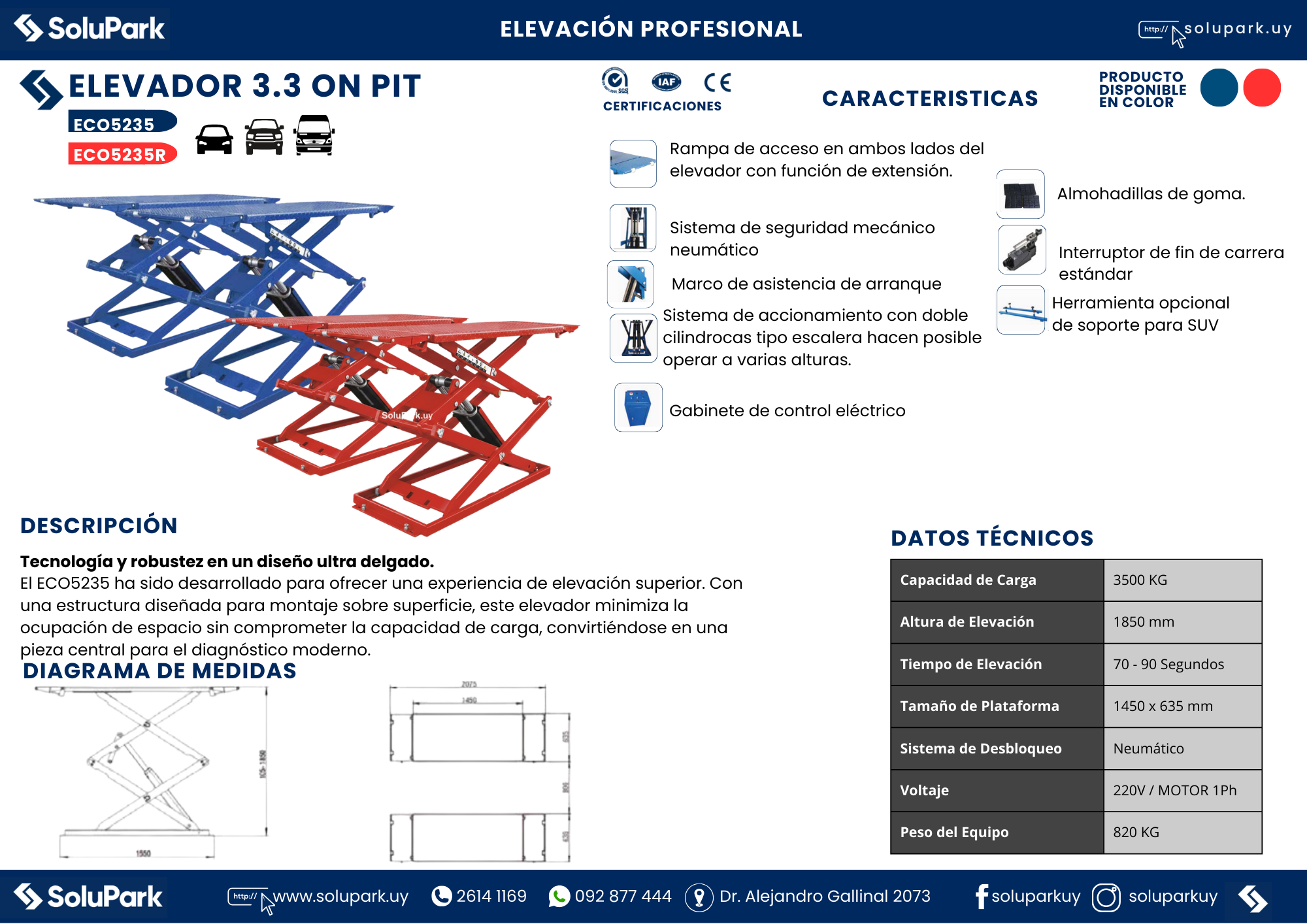Elevador hidráulico de tijera de perfil bajo, mucho mas espacio en tu taller.