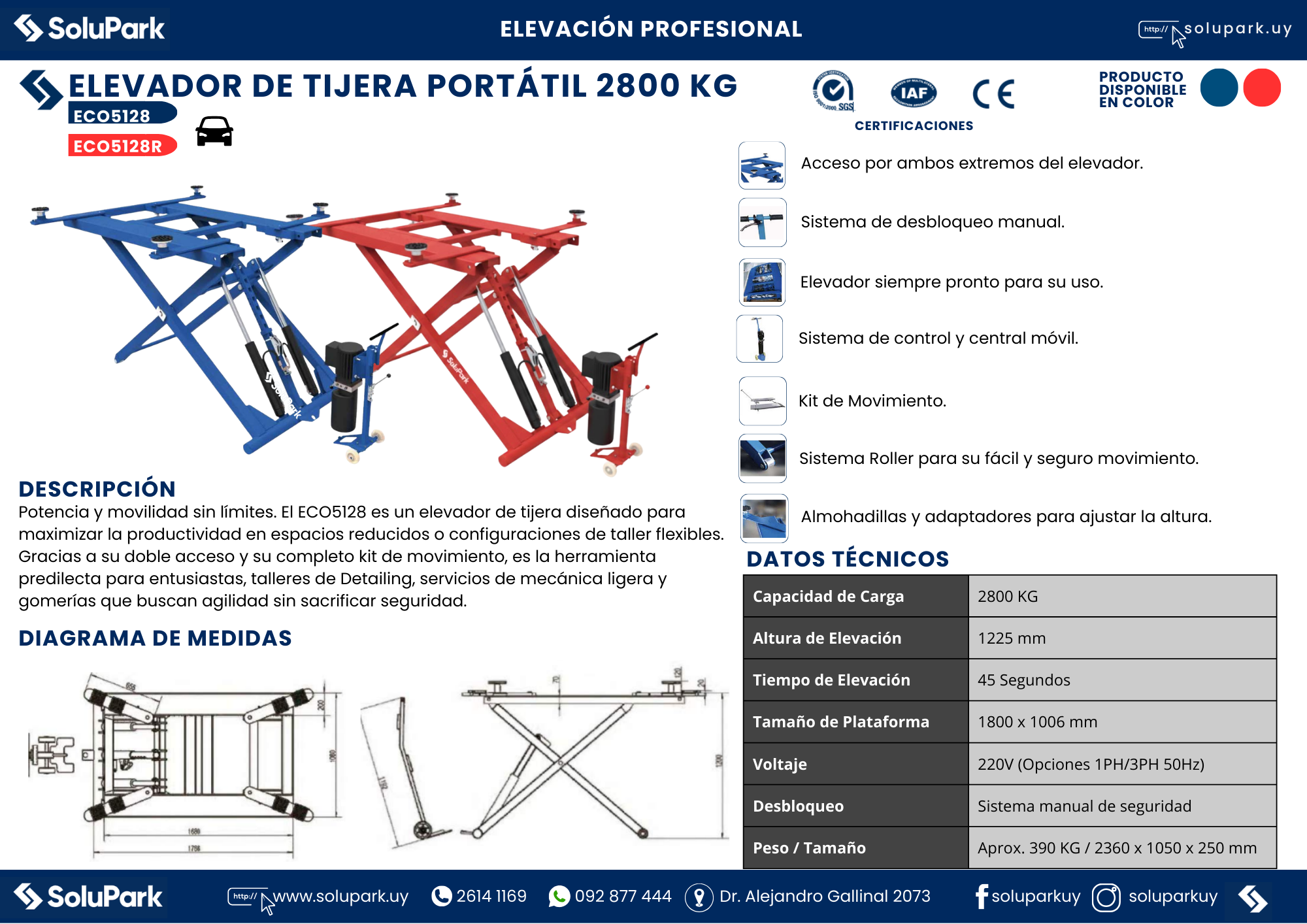 - Capacidad de elevador : 2800 Kgs
